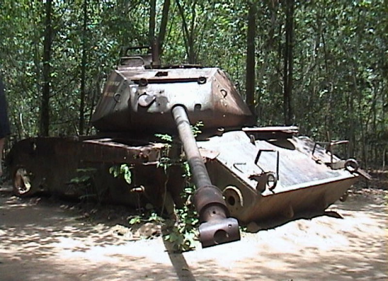 The peacefully rural rice paddy scenery contains ducks and water buffalos swimming in the rivers alongside the road. Visitors will find it hard to imagine the destructions, damage and defoliation all over the area, caused by bombing and mines, When Cu Chi was " A Free Target Zone ". The remnants visitors will see show Cu Chi still has her evidence to prove the fierce battleground that took place there.